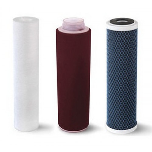 Комплект сменных картриджей №2 предназначен для фильтра Гейзер 3 (средний уровень минерализации воды).