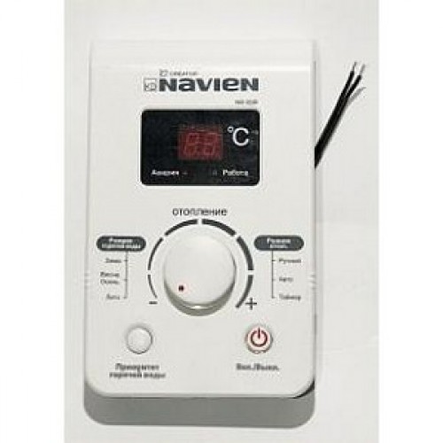Комнатный терморегулятор NAVIEN – прибор, который используется для поддержания постоянной температуры воздуха в отапливаемом помещении, при этом экономит газ, электричество и бережёт котёл от износа! Вы задаёте на термостате необходимую Вам температуру в помещении только один раз, в дальнейшем Вам не придётся больше вручную её регулировать. При понижении или повышении температуры воздуха термостат даёт команду котлу работать в режиме отопления или отключиться.