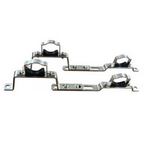 Кронштейны для коллекторов универсальные раздвижные состоят из разборной крепежной планки, к которой винтами крепятся два стальных никелированных хомута.
