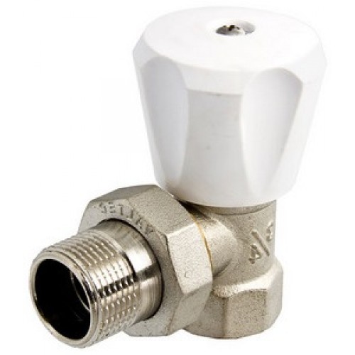Угловой компактный (облегченный) радиаторный клапан. Основное назначение – ручное плавное регулирование расхода теплоносителя через отопительный прибор. При замене регулировочной ручки на защитный колпачок может использоваться в качестве настроечного клапана. Наличие полусгона позволяет монтировать и демонтировать клапан без демонтажа трубопровода. Ремонтопригодный. Рабочая температура – до 110 °С, давление – до 10 бар. Резьба присоединений – внутренняя/наружная.