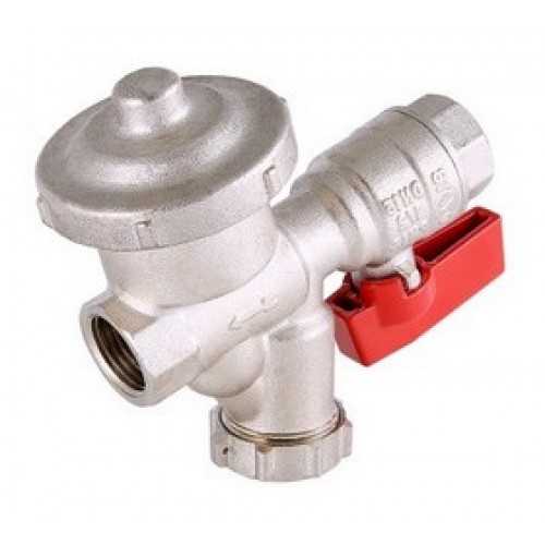 КФРД VT.300 представляет собой комбинацию прямого шарового крана, косого фильтра с заглушкой и расположенной под тупым углом к оси потока фильтровальной камерой, мембранного редуктора давления (настройка фиксированная, 3,4 бара).