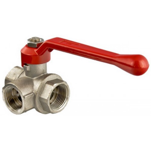 Латунный никелированный трехходовой кран, обеспечивающий изменение потока в трубопроводах систем водоснабжения, отопления, технологических установок. Ремонтопригоден, оснащен шаровым затвором с T-образным каналом, тефлоновыми (PTFE) седельными кольцами и сальниковым уплотнением, флажковой рукояткой из алюминиевого сплава. Минимальный ресурс крана – 20 тыс. циклов. Максимальная температура рабочей среды – 150 °С. Резьба всех присоединений – внутренняя.