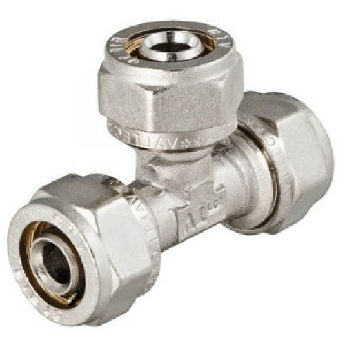 Фитинг обжимной – тройник латунный никелированный для соединения металлопластиковых (металлополимерных) труб. Имеются равнопроходные и переходные модели.