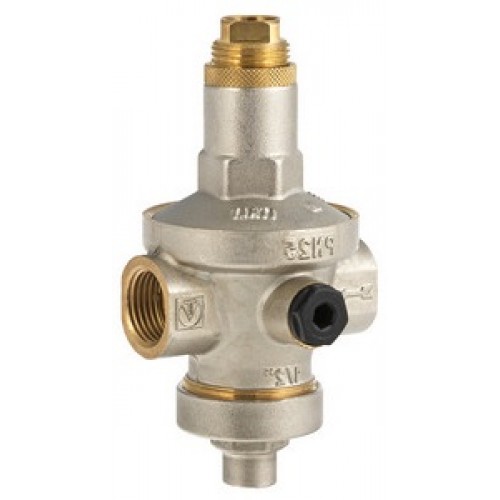 (VT.085.N) Назначение мембранного редуктора – поддержание заданного давления в установках отопления, водоснабжения, технологических системах, транспортирующих жидкости, неагрессивные к примененным материалам. Диапазон настроек – 1–7 бар, заводская настройка – 3 бара. Стабильность регулируемого параметра обеспечивается независимо от скачков сетевого давления. Наличие демпфирующей камеры позволило минимизировать допустимые колебания выходной величины: ±5 %. Редуктор с двух сторон имеет отверстия с резьбой ¼” для установки манометра. Благодаря отсутствию трущихся частей мембранные редукторы менее зависят от загрязненности воды, чем поршневые, более надежны. Мембрана выполнена из армированного EPDM. Максимальная рабочая температура – 80 °С, номинальное входное давление – 25 бар.