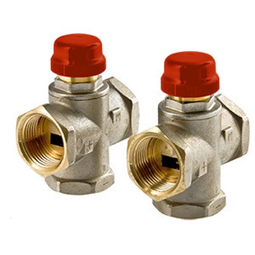 Клапан предназначен для использования в смесительных узлах гидравлических систем (байпасные узлы подмеса, узлы смешения для получения заданного уровня температуры смешанной жидкости и т.п.). Регулирование клапаном может осуществляться вручную или с помощью сервопривода. Корпус выполнен из латуни марки CW617N (европейский стандарт EN 12165), никелирован. Материал штока, основания золотника и пружины – нержавеющая сталь марки AISI 316, золотникового уплотнителя – EPDM. Резьба присоединительных патрубков – внутренняя, 1". Данная модель – повышенной пропускной способности, с боковым смешением, для установки в байпас без возможности его полного перекрытия (такая схема позволяет обойтись без перепускного клапана). Клапан не обеспечивает полного перекрытия потока.