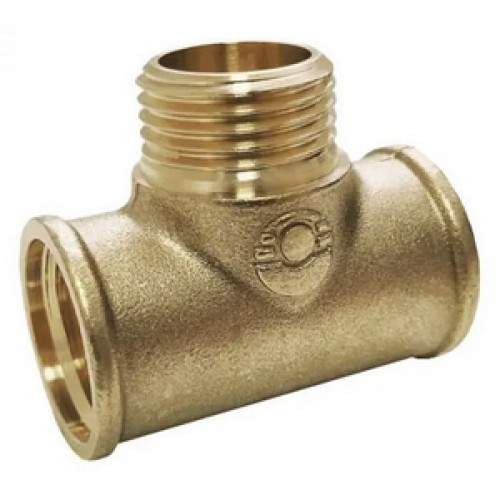 Латунный трехсторонний фитинг, равнопроходной, соединяющий три отрезка трубы, один из которых устанавливается перпендикулярно двум другим. Резьба - внутренняя/наружная/внутренняя цилиндрическая трубная по ГОСТу 6357-81. Фитинги рассчитаны на рабочее давление (PN) 2,5 и 4,0 МПа и температуру транспортируемых сред от -20 до +150 °С.