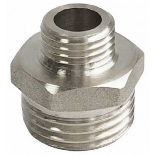 Латунный фитинг (ниппель), представляющий собой изделия с наружной резьбой на обоих концах, с помощью которых они соединяются с другими участками трубопровода разного диаметра, резьба цилиндрическая трубная по ГОСТу 6357-81. Предусмотрен участок корпуса шестигранной формы, под гаечный ключ, что облегчает монтаж соединения. Фитинги рассчитаны на рабочее давление (PN) 2,5 и 4,0 МПа и температуру транспортируемых сред от -20 до +150 °С.