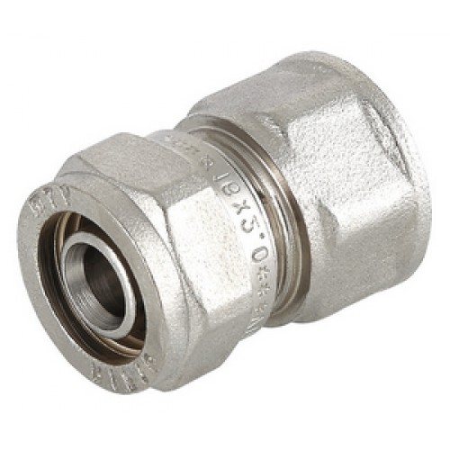 Двухсторонний прямой латунный никелированный фитинг для соединения металлополимерной трубы и компонента системы с резьбовым подключением. Резьба фитинга – наружная трубная по ГОСТу 6357.