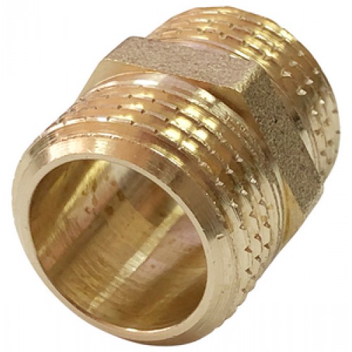 Латунный фитинг (ниппель), представляющий собой изделия с наружной резьбой на обоих концах, с помощью которых они соединяются с другими участками трубопровода равного диаметра, резьба цилиндрическая трубная по ГОСТу 6357-81. Предусмотрен участок корпуса шестигранной формы, под гаечный ключ. Фитинги рассчитаны на рабочее давление (PN) 2,5 и 4,0 МПа и температуру транспортируемых сред от -20 до +150 °С.