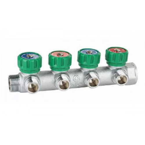 Коллектор с регулирующими вентилями 4 выхода Ø3/4"х1/2" угол 90° GAPPO