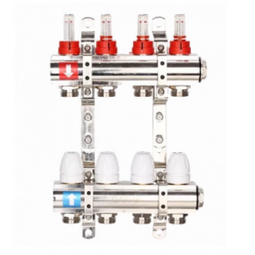 Комплектация: коллектор с термостатическими клапанами и расходомерами - 1 комплект, заглушка НР 1" - 2 шт, кронштейн - 1 пара.