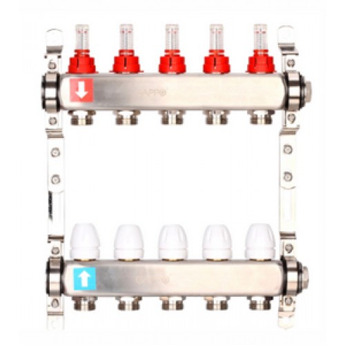 • Коллекторная группа (нерж) с расходомерами без ВО и дренажных кранов 4 вых. Ø1" GAPPO