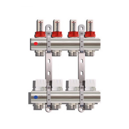 Коллекторная группа (латунь) с расходомерами без ВО и дренажных кранов 6 выходов Ø1" TIM