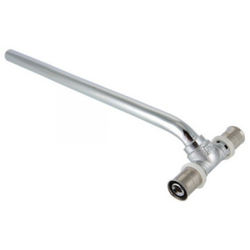 (VTm.282.N) Пресс-фитинг – тройник с хромированной латунной трубкой (наружный диаметр – 15, толщина стенки – 1 мм), предназначенный для подключения отопительного прибора к разводке из металлополимерных труб.