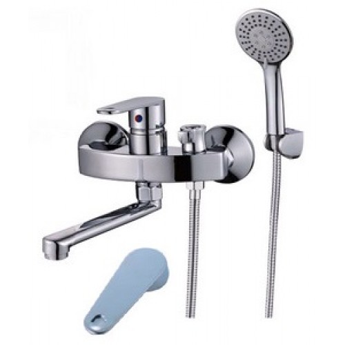 Смеситель для ванны лат. короткий L-излив встроен.диверт. КС 203206