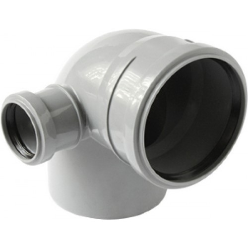Отвод универсальный номинального диаметра DN110 под углом 87,5 градусов имеет выход слева диаметром 50 мм применяется для соединения труб и фасонных деталей внутренней канализации, используется для монтажа канализационных систем, транспортирующих стоки внутри жилых, административных, производственных зданий.