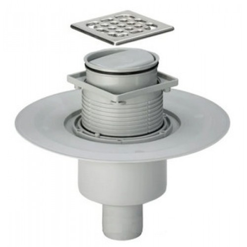 Трап внутр. канал. вертикальный 100х100 метал. решетка Ø50 с сухим затвором TIM