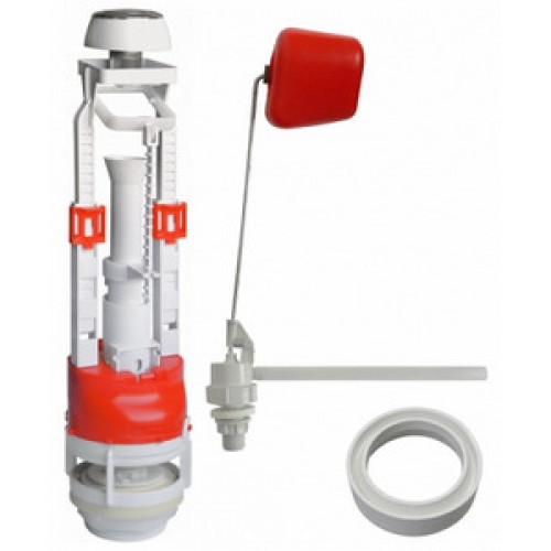 1-режимный кнопочный универсальный механизм слива "СБкпм" с переходным кольцом под отверстие 24мм. в комплекте с боковым наполнительным клапаном Бм.