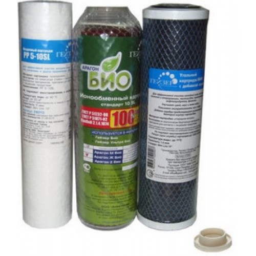 Комплект сменных картриджей №7 предназначен для фильтров Гейзер БИО 321 и Гейзер БИО 322 (средний уровень минерализации воды).