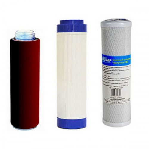 Комплект картриджей №10 Гейзер - набор сменных модулей к бытовым трехступенчатым фильтрам Гейзер-БИО 341 и 342. Картриджи стандарта 10 SL подобраны специально для фильтрации воды с избыточным содержанием железа.