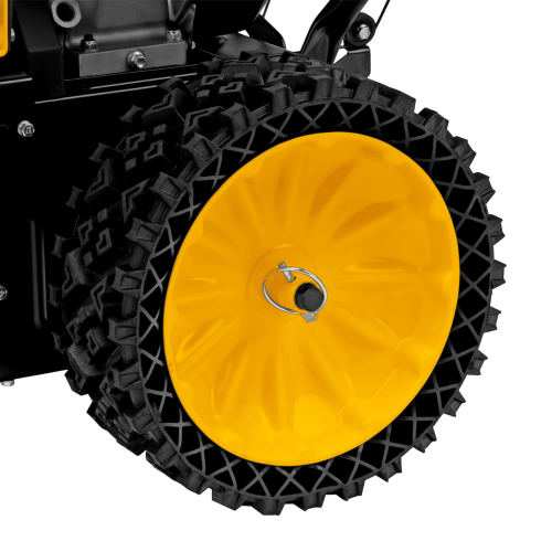 • Защита колес от повреждений — за счет бескамерных колес любые повреждения шины не повлияют на работу снегоуборщика.