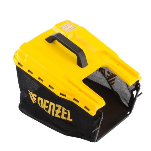 - Комбинированный травосборник — емкость на 40 л из прочного РР пластика и мягкого сетчатого материала легко очищать, а также удобно хранить в сложенном виде.