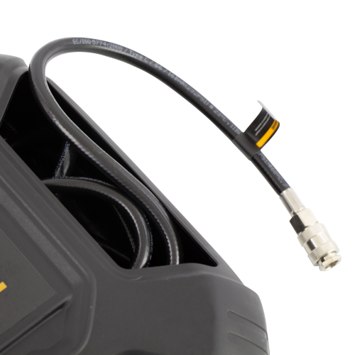 - Компактность — в компрессоре предусмотрены отсеки для кабеля питания, аксессуаров и пневмопистолета со шлангом. Такое решение позволяет аккуратно расположить комплектующие в одном месте и с удобством переносить оборудование.