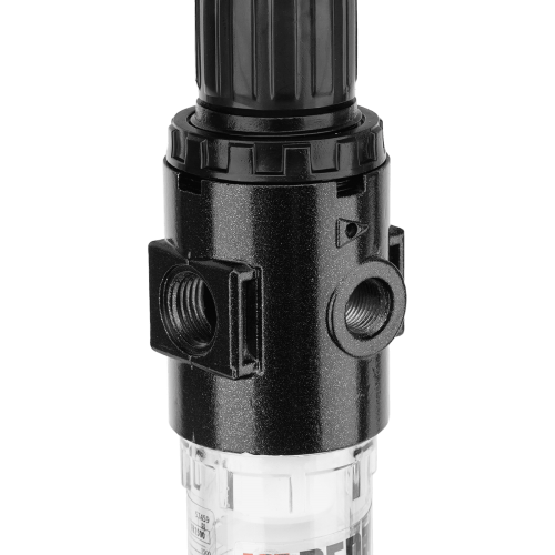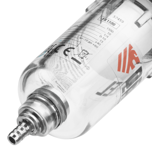 Фильтр-регулятор Denzel FR1500 57459 с присоединительным размером 1/4" и рабочим давлением 10 бар имеет пропускную способность 1500 л/мин и предназначен для подготовки сжатого воздуха, поступающего от компрессора: осушения и очищения от пыли и других твердых частиц размером от 40 мкм. Также позволяет устанавливать и поддерживать давление, необходимое для эффективной работы пневмоинструмента. Может эксплуатироваться при температуре от -10 °C до +60 °C. Фильтр-регулятор предназначен для бытового применения, также будет полезен в мастерской и гараже.
