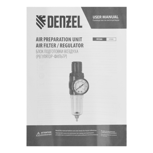 Фильтр-регулятор DENZEL FR1500, 10 бар, 1500 л/мин, 1/4"