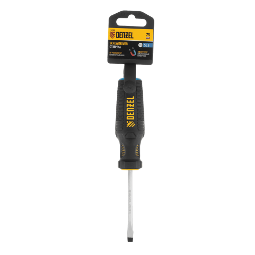 Отвертка DENZEL SL5x75 мм, CrV, трехкомпонентная рукоятка