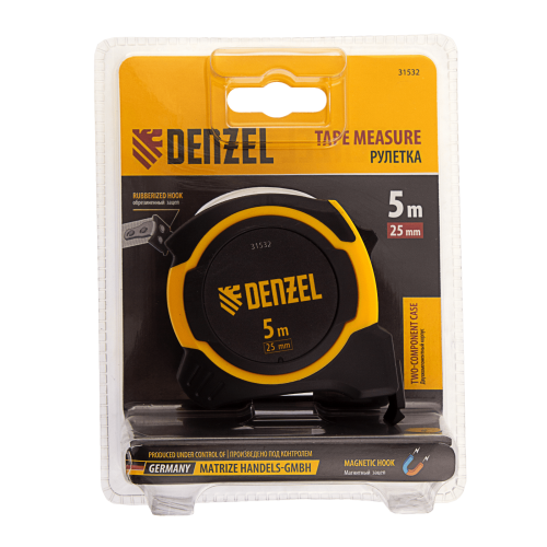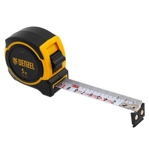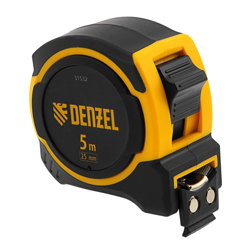 Рулетка DENZEL 5м х 25мм, двухкомп. корпус, магнитный обрезиненный зацеп
