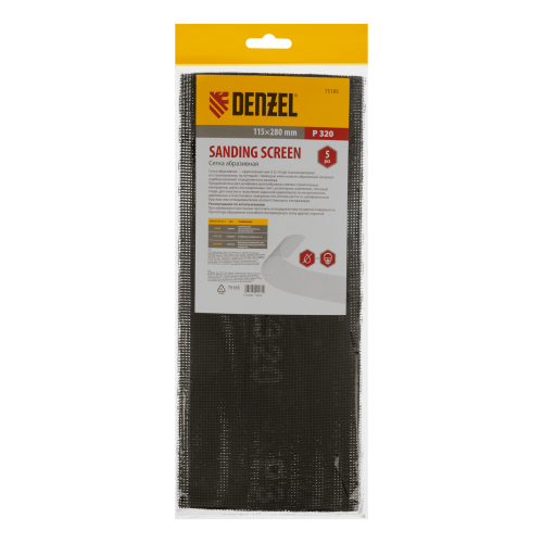 Абразивная сетка Denzel 75185, 115 х 280 мм, с зернистостью P 320, 5 шт. в упаковке, применяется для финишной обработки и придания гладкости зашпаклеванным поверхностям, а также твердой древесине и металлу. Она бережно снимает тонкий слой материала и лакокрасочного покрытия, удаляет ржавчину и заусенцы, сглаживает неровности. Абразивный слой обладает высоким ресурсом, т.к. зерна карбида кремния стачиваются медленно. Сетку устанавливают на ручные шлифовальные приспособления — бруски и сеткодержатели соответствующего типоразмера.