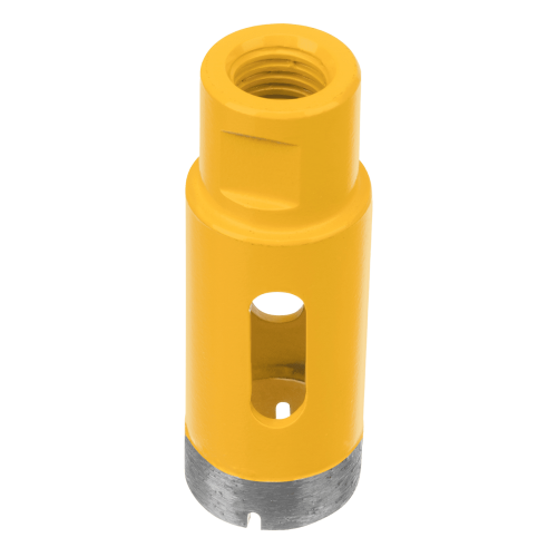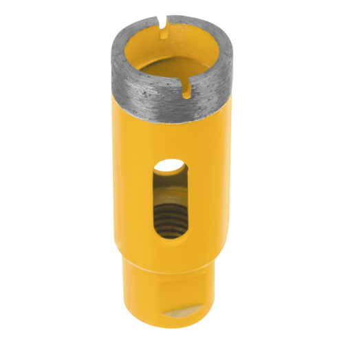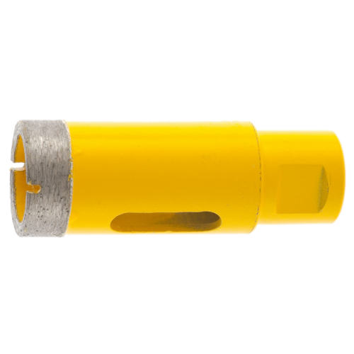 Алмазное сверло Denzel 72682, 27 мм, М14, предназначено для мокрого сверления по керамограниту, мрамору, стеклу и керамической плитке. Позволяет получать ровные отверстия без сколов, используется при проведении ремонтных и отделочных работ. Сверло (коронку) устанавливают на вал углошлифовальной машины, благодаря чему скорость сверления увеличивается в несколько раз по сравнению с дрелью или шуруповертом. Применение водяного охлаждения повышает срок службы оснастки. Чтобы точно позиционировать сверло при сверлении дрелью, рекомендуется использовать кондуктор Matrix 72830.