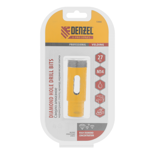Сверло алмазное по керамограниту DENZEL, 27 мм, М14, мокрая резка
