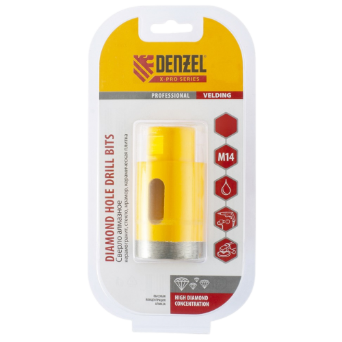 Сверло алмазное по керамограниту DENZEL 72694, 70 мм, М14, мокрая резка