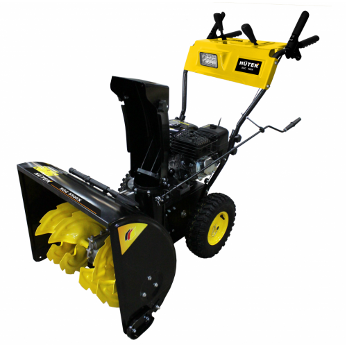 Рабочая система снегоуборщика Huter представляет собой снегозаборный желоб со шнеком, а также вентилятор в форме крыльчатки и желоб для выброса снега (кроме SGC 3000). Агрегат приводится в действие четырехтактным поршневым одноцилиндровым бензиновым двигателем внутреннего сгорания с воздушным охлаждением.
