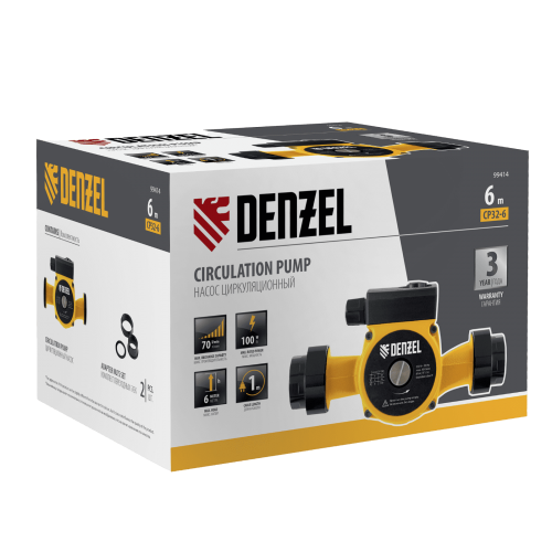 Циркуляционный насос DENZEL CP32-6, напор 6 м, 70 л/мин, 1 м кабель, монт. длина 180 мм
