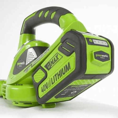 Воздуходувка аккумуляторная Greenworks из линейки устройств 40 вольт (модель G40KL) — предназначается для уборки опавшей листвы, пыли, прочей грязи и мусора. Данная модель имеет аксиальное строение вентилятора, что делает возможным достижения высоких показателей скорости объема потока воздуха 223 - 240 км/ч. Данные характеристики позволяют конкурировать с бензиновыми аналоги, но при этом аккумуляторный воздуходув будет обладать рядом неоспоримых преимуществ: