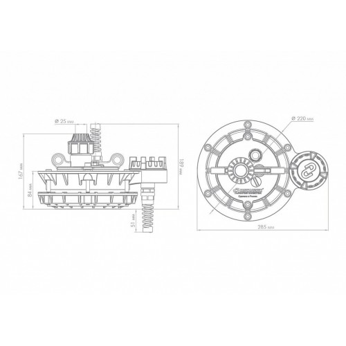Оголовок предназначен для герметизации устья скважины. Выбор оголовка зависит от наружного диаметра обсадной трубы от 110 до 160 мм и диаметра полиэтиленовой напорной трубы 25,32 или 40 мм.