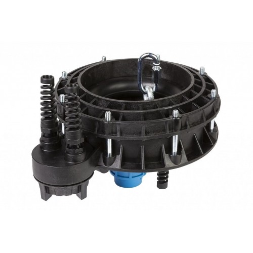 Повышает надежность подвешивания насоса. Упрощает эксплуатацию технического колодца. Оголовок, с базовой (стационарной) частью крепится на обсадной трубе один раз за весь период эксплуатации оголовка. На базовую часть, в свою очередь, устанавливается съемная крышка, через которую проходят электрокабель и напорная труба. Такие оголовки позволяют производить простое, многократное соединение/разъединение электрокабеля в клеммной коробке при извлечении насоса из скважины.