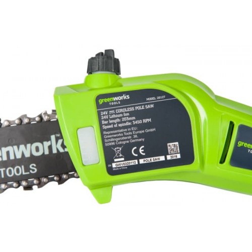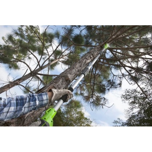 Высоторез сучкорез аккумуляторный Greenworks G24PS20 серии 24 вольта - специально разработан для подрезки веток и сучьев у деревьев на достаточной высоте, чтобы не пользоваться лестницами.