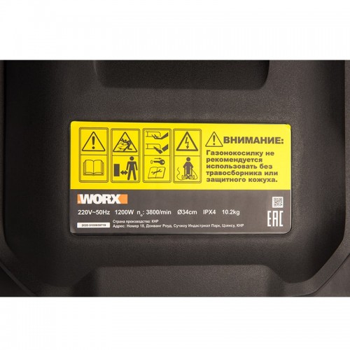 • Газонокосилка электрическая WORX 1200W, 34 см, артикул WG713E;