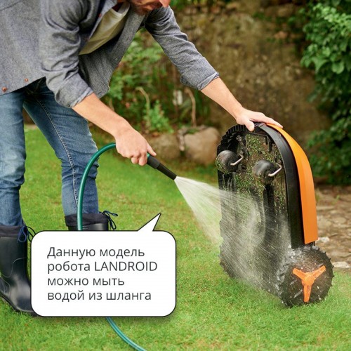 Роботизированная газонокосилка Worx Landroid M500 Plus WR165E сконструирована по системе Plug-N-Play: чтобы начать работу с ней не нужно проводить сложное программирования и выставлять настройки. Повышает комфорт от использования и технология AIA, благодаря которой робот самостоятельно рассчитывает оптимальный график и параметры кошения. Такая автономия не отменяет участия человека: для тех, кто привык все держать под контролем в приложении Landroid (работает на iOS и Android, скачивается бесплатно) можно задавать настройки вручную. Оно же будет передавать на ваш смартфон важную информацию о состоянии лужайки и косилки.
