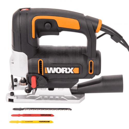 WORX WX478.1 — работающий от сети 230В лобзик мощностью 650Вт. Безинструментальная смена пилки обеспечивает быстроту и безопасность проводимых работ. 4 ступени маятникового хода для повышения эффективности пиления. Регулируемая база для резки под углом, способность скоса пиления — от 0 до 45 градусов. Для быстрой очистки места среза в лобзик установлен специальный пылесборник. Емкость для лезвий — прямо на инструменте,чтобы быстро сменять пилки и не бегать по гаражу в поисках нужного расходника. Алюминиевая база, блокировка выключения. Данная модель поставляется в кейсе.