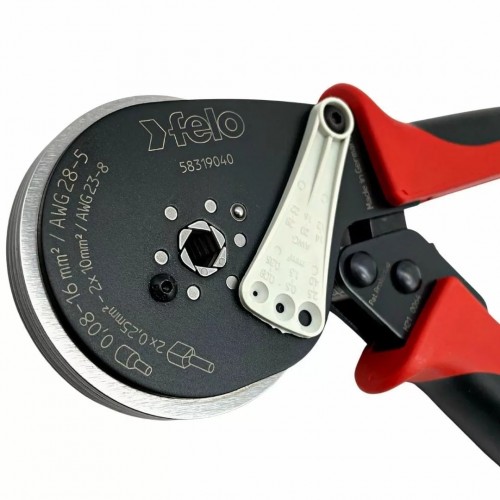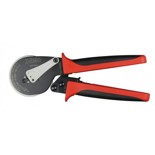 Ручной обжимник FELO 58319040 предназначен для быстрой и надежной опрессовки. Конструктивно инструмент производит гексагональный обжим для уменьшения установочных размеров кабеля. Небольшие габариты и вес инструмента облегчают работу пользователя. Рукоятки обжимника изготовлены из двухкомпонентного материала, поэтому идеально адаптируются в руке и не выскальзывают во время работы. Диапазон работы для одинарного кабеля от 0,08 до 16 мм2, а для пары – от 0,25 до 10 мм2. Дополнительно на обжимнике установлено пластиковое центрующее устройство.