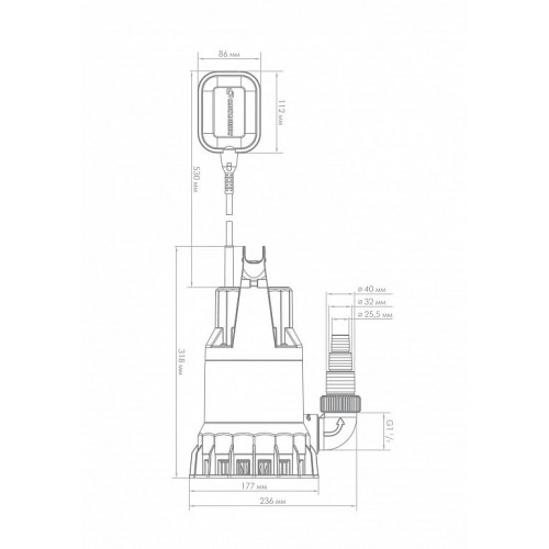 • Защита от «сухого хода». Благодаря поплавковому выключателю уровень жидкости контролируется автоматически. Если откачиваемая вода опускается ниже определённого уровня дренажный насос отключается.
