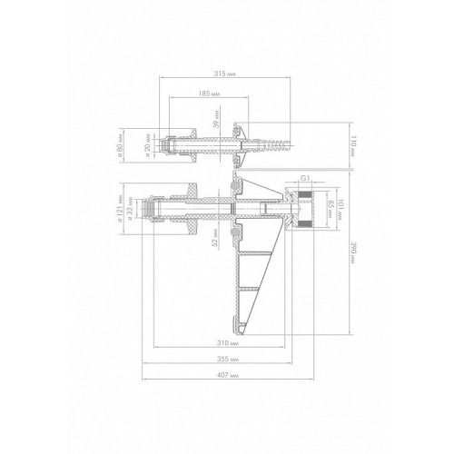 Адаптер обеспечивает ввод напорной магистрали и электрокабеля в