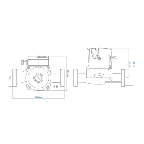 • Установочный размер между присоединительными фланцами — 180 мм.