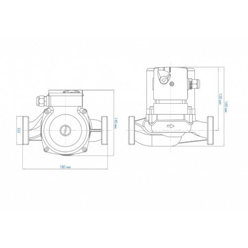 - Установочный размер между присоединительными фланцами — 180 мм.