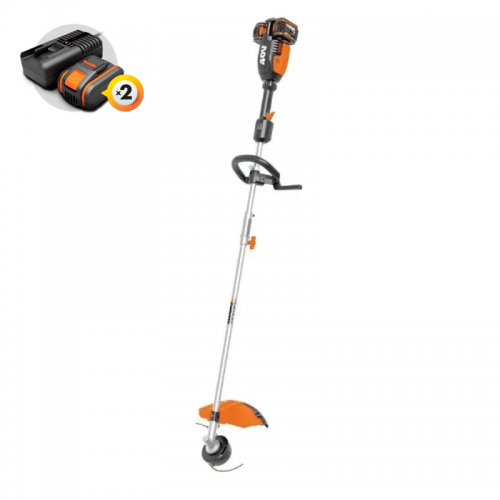 Триммер WORX WG186E 40V работает от двух аккумуляторов PowerShare 20V. Ширина скашивания — 33 см, диаметр лески — 2,0 мм, длина лески в катушке — 6 м. Триммер имеет передний ограничитель для корректной стрижки без повреждений декоративной растительности и встречных объектов. Вспомогательная ручка регулируется по высоте штанги. Устройство имеет бесщёточный двигатель и систему автоподачи лески нажатием кнопки — COMMAND FEED. Вес модели — 3,9 кг.